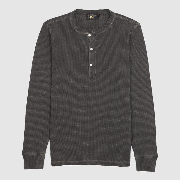 Double RL Long Sleeve Waffle Henley Shirt - light blueDouble RL Long Sleeve Waffle Henley Shirt – light blue